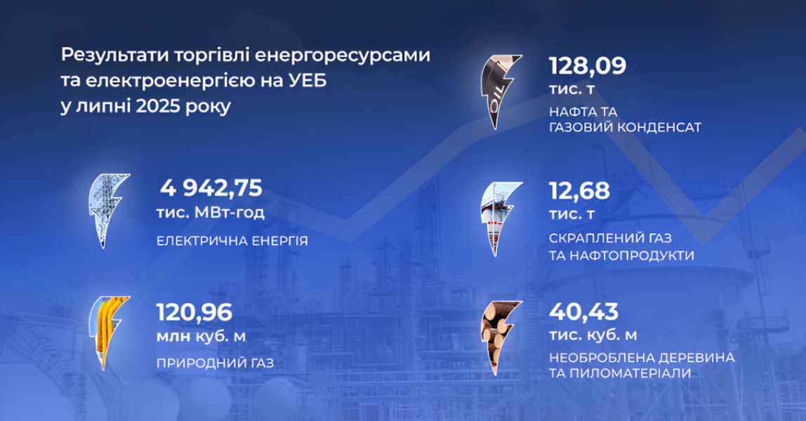 Зазначається, що у липні 2025 року на УЕБ провели 86 аукціонів із купівлі-продажу електроенергії, а також 134 торгові сесії з продажу інших ресурсів та по 4 торгові сесії кожного дня – на короткостроковому ринку природного газу.
